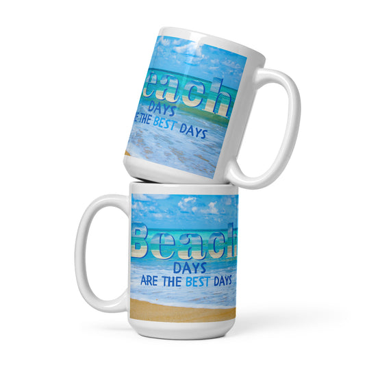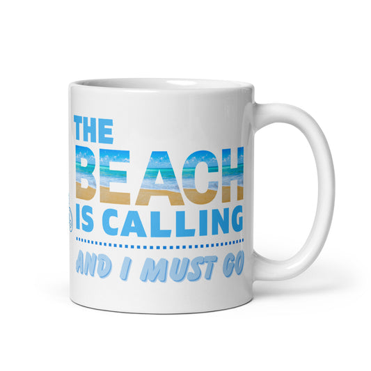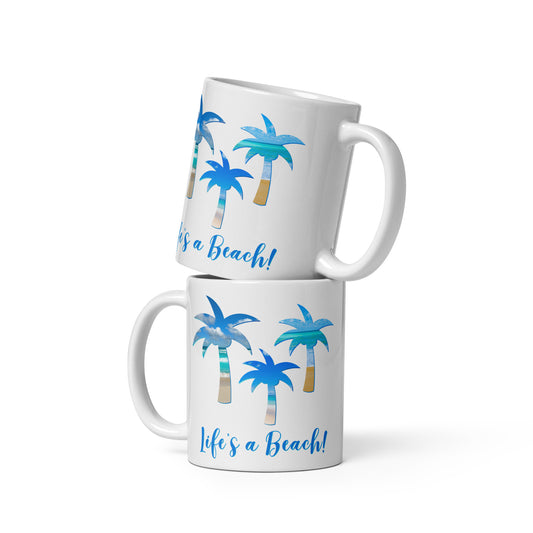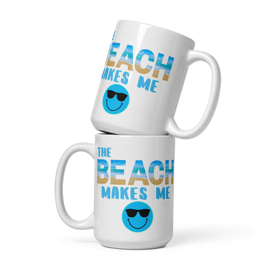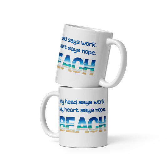 White Glossy Mug - My Heart Says Beach (Dk Blue)