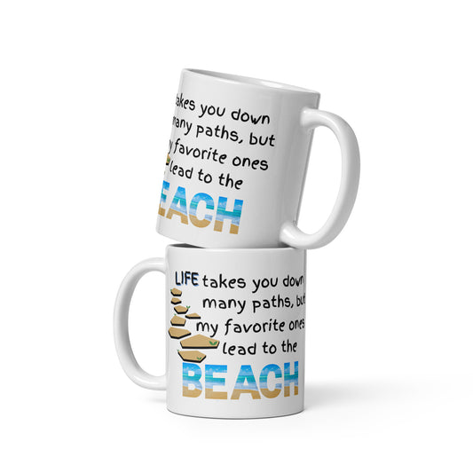 White Glossy Mug - Life Takes You Down Many Paths - Beach