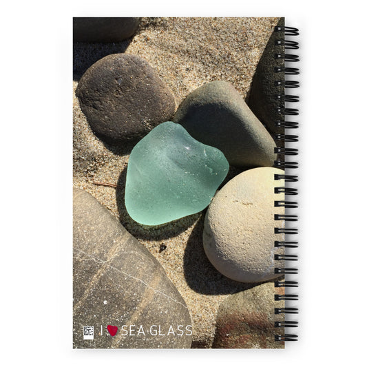 Spiral Notebook - BIG Green Sea Glass Heart!