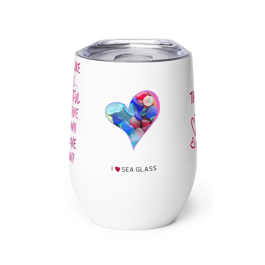 Wine Tumbler - I Love Sea Glass and Wine! (with heart)