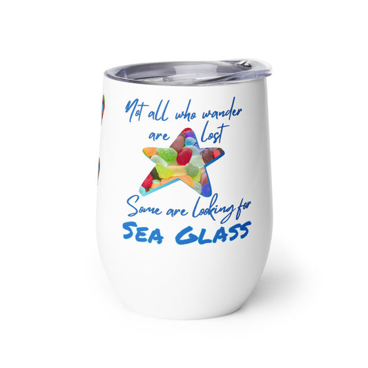 Wine Tumbler - Not All Who Wander are Lost - Looking for Sea Glass