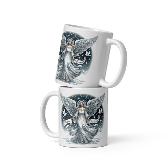 White Glossy Mug - Peace on Earth Angel