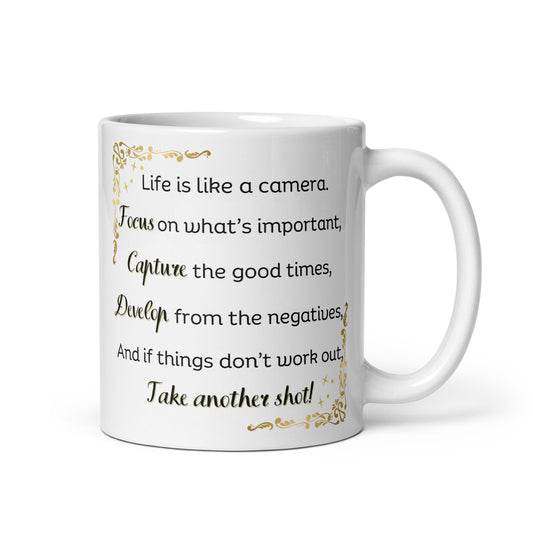 White Glossy Mug - Life is Like a Camera